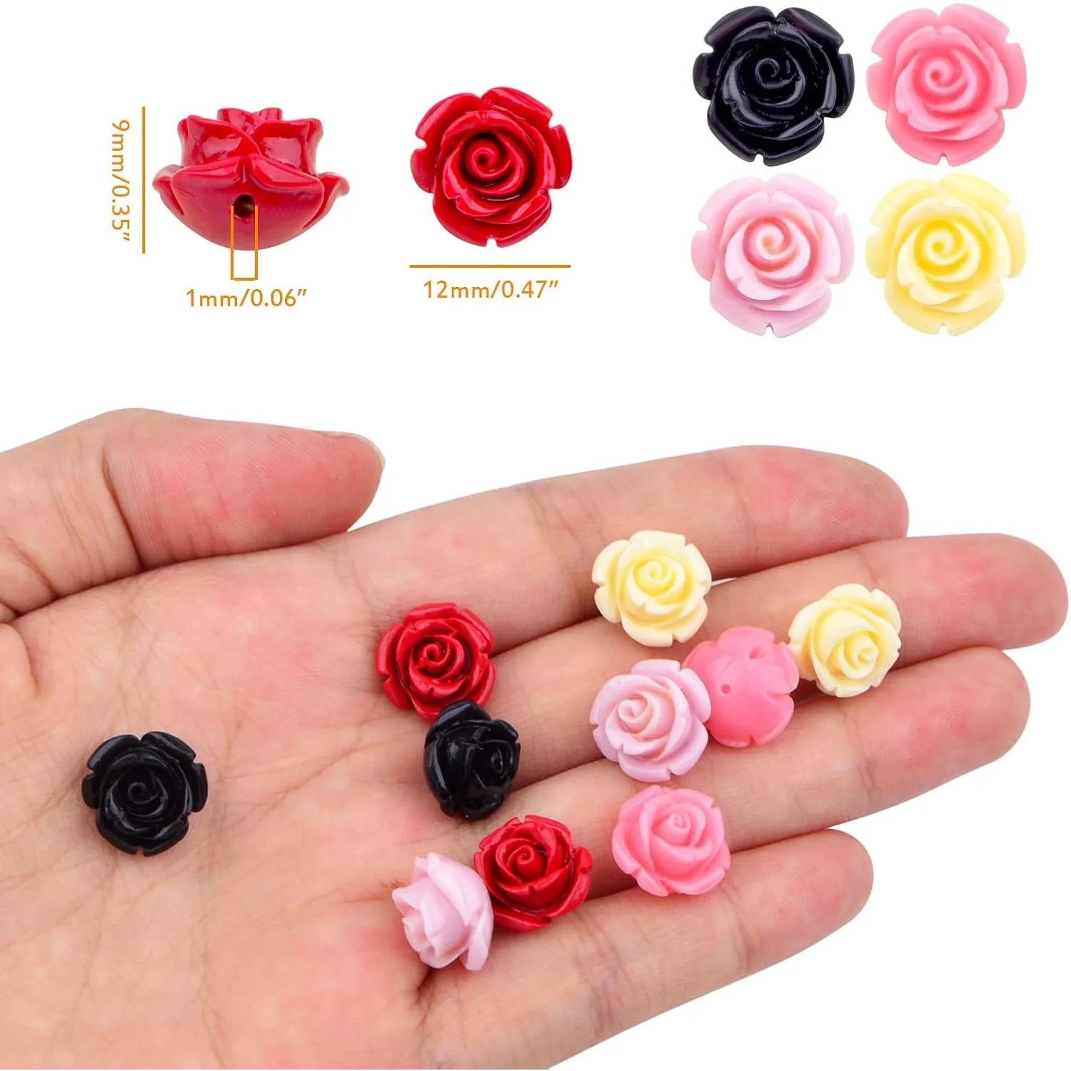 SUFFICIENT QUANTITY: 50pcs rose flower beads in 5 colors