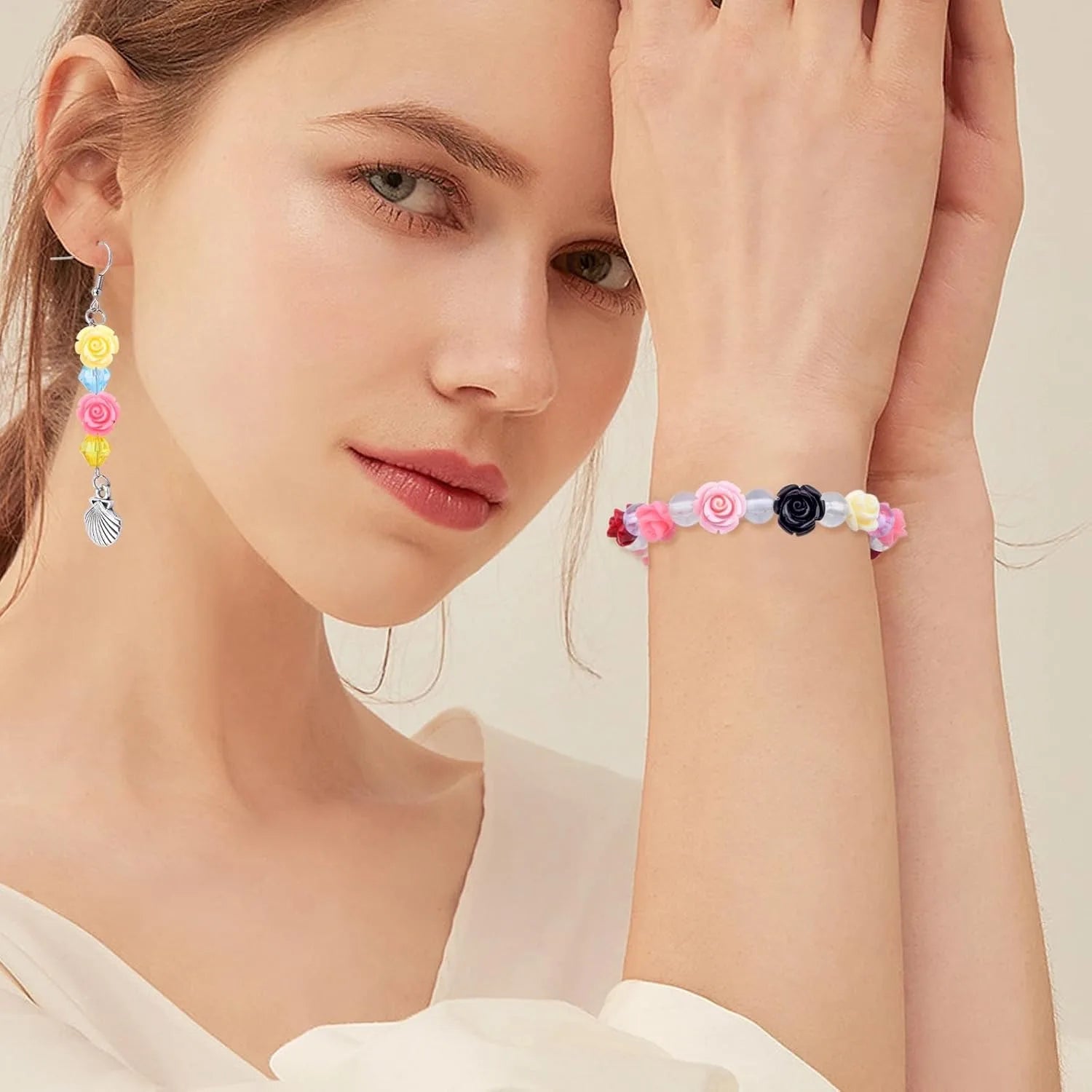 Usage: colorful roseflower beads, DIY jewelry making, necklaces, bracelets, etc.